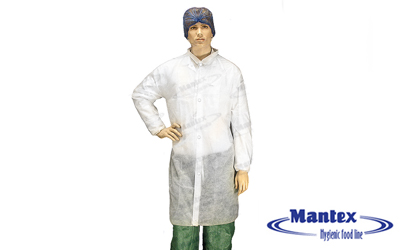 Mantex PP Non-Woven bezoekersjas met kraag en drukknoop 40gr. wit XL 50/ds - 630106