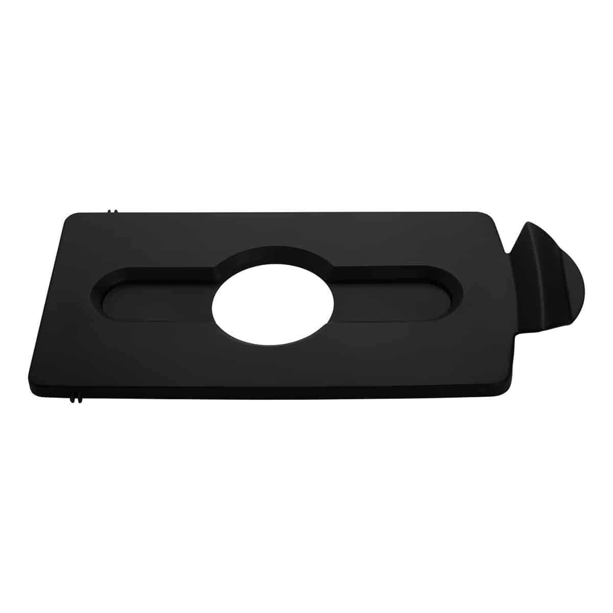 Flessendekselinzet van polypropyleen voorzien van een gat voor flessen/blikjes voor het Slim Jim Recyclingstation. Het scharnierende deksel kan gemakkelijk op de inwerpopening van de starterset worden geklikt. Dekselinzetten beschikbaar in diverse kleuren en uitvoeringen voor verschillende afvalstromen.