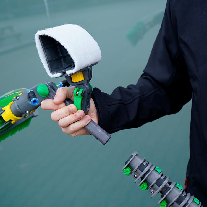 Perfect en schoon tot in het kleinste detail. Verwijdert optimaal vastzittend vuil. Gebogen, groot contactoppervlak. Smart Lock Klem voor flexibele aanpassing van de werkhoek. Borgschroef voor bevestiging van de pad. Compatibel met nLITE telescopische stelen en de volledige oval hoek adapters. In combinatie met het nLITE telescoopsteelsysteem vormt dit gereedschap een belangrijke aanvulling op de uitrusting van elke glazenwasser en schoonmaker. Vogelpoep, hardnekkige insectenresten of ander vastzittend vuil is vaak moeilijk te verwijderen. De nLITE houder is speciaal ontwikkeld om zelfs dergelijk hardnekkig vuil eenvoudig en effectief te verwijderen met zuiver water in combinatie met de schrobpad. De aanbevolen werkhoogte is ongeveer 6 meter, d.w.z. tot de 1e verdieping. Steel montage(voor montage tussen steel en hoekadapter). Unger schrobpad (Schurende pad).