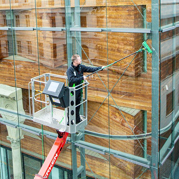 Pas bij de keuze van de juiste borstel wordt glasbewassing met zuiver water echt succesvol. Door de innovatieve borstelharen van de UNGER nLITE Power borstel compleet is glasbewassing in een handomdraai gedaan. Langere buitenste borstelharen zorgen dat de borstel goed glijdt, vuil wordt verwijderd door de zeer effectief reinigende binnenste borstelharen. De waterstralen vanuit de in het midden van de borstel