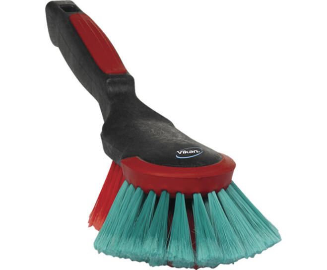 De Vikan 524652 is een ergonomische handborstel die deel uitmaakt van het Vikan Transport System. De Vikan autowasborstel komt gemakkelijk in moeilijke hoeken dankzij de schuine plaatsing van de vezels. De rubberen stootrand voorkomt krassen op de lak.